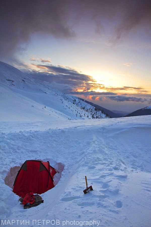 Легнах рано. Навън духаше вятър, навяваше сняг по стените на палатката и всичко това прилежно гравирано с гъста мъгла. Времето си показа зимните магарии. Планувах да стана в пет и да отскоча до голям Мечи връх. Знаех, че оттам се откриват шеметни панорами. Катя и тя пристигна по някое време да спи. Усетих я в просъница, но продължих да спя. Червената напитка на Иван остави свой отпечатък...